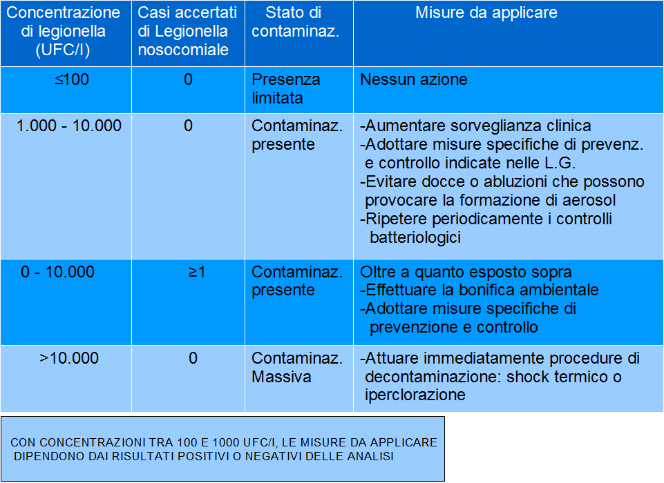 E’ bene distinguere due attività utili alla gestione del batterio della legionella: