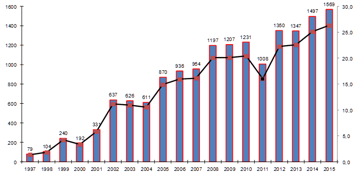 Il 12.01.2017 EpiCentro ha aggiornato i dati sui casi di legionellosi segnalati nel nostro Paese nel corso del 2015: