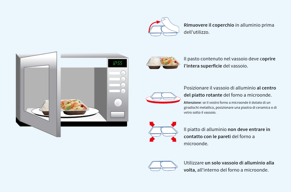 Indicazioni per l’utilizzo delle vaschette di alluminio nel forno a microonde